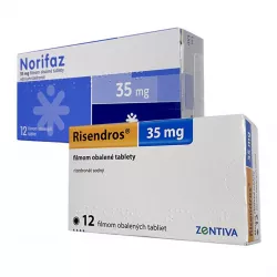 • Действующее вещество: комбинация 70мг Алендроновой кислоты и 70мкг Колекальциферола, что соответствует 2800МЕ